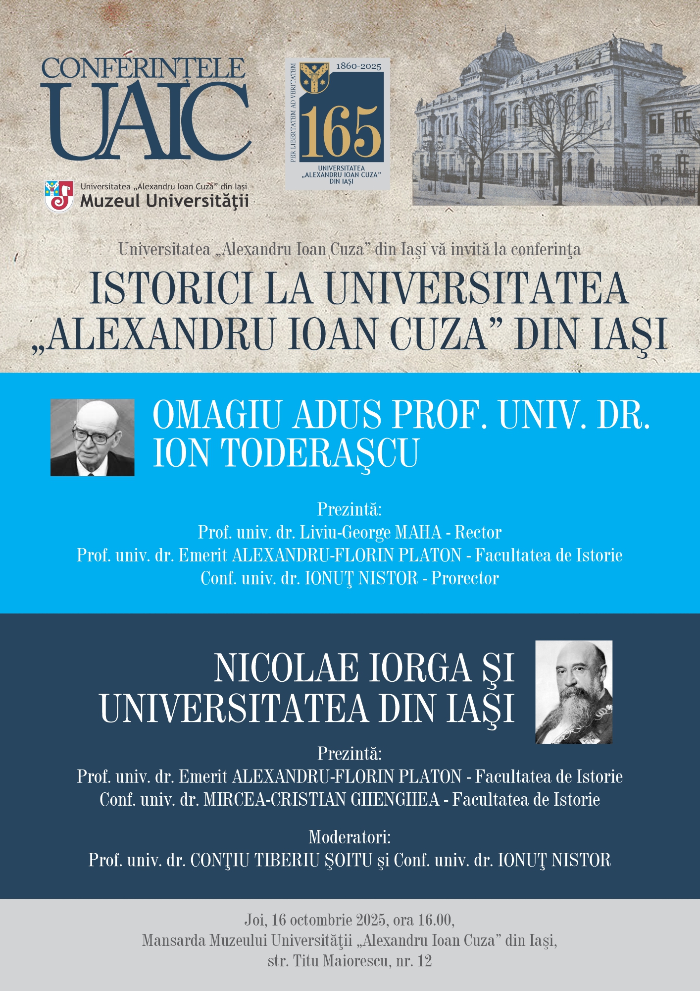Detalii mai multe găsiţi pe pagina de site cu adresa https://www.uaic.ro/event/conferinta-istorici-la-universitatea-alexandru-ioan-cuza-din-iasi/