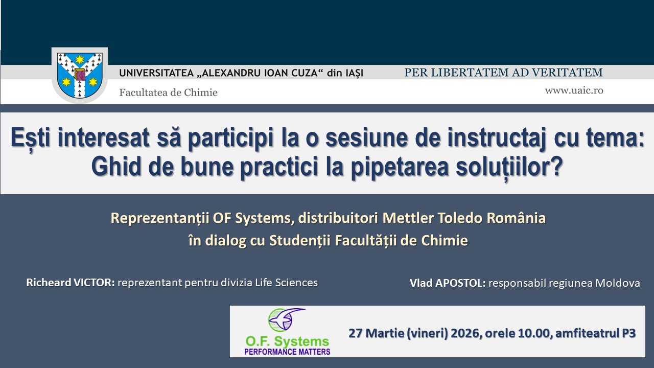 INVITAŢIE la întâlnirea cu reprezentanţii OF Systems, distribuitori Mettler Toledo România, vineri 27 martie 2026, în amfiteatrul P3, la ora 10