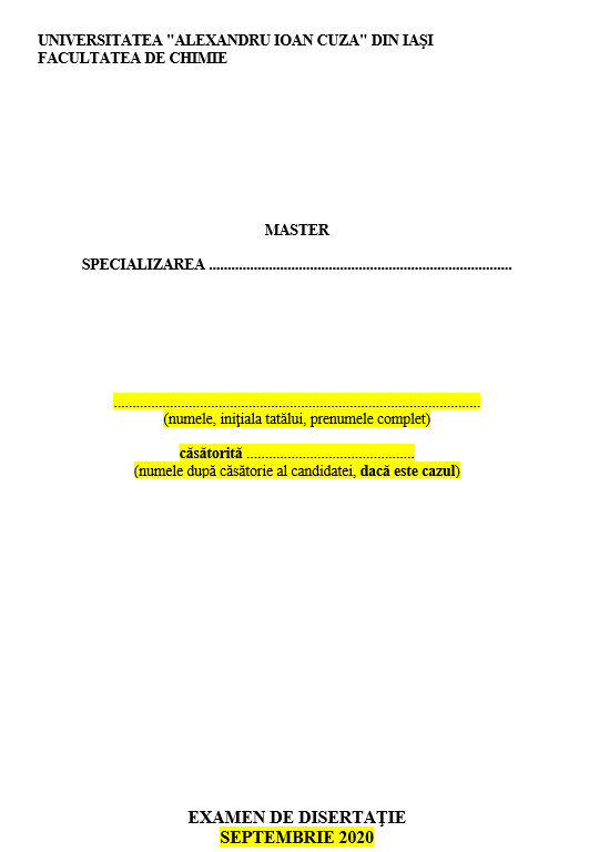 - Ghidul de elaborare a lucrării de disertaţie poate fi consultat de pe pagina de site http://www.chem.uaic.ro/ro/examene/ghid-disertatie.html